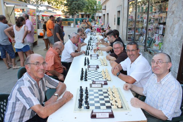 El día 11 de Agosto del 2013 en las fiestas de verano se realizó en Llucmajor un durísimo torneo de partidas rápidas con la participación de 46 jugadores y muchas «vacas sagradas» del ajedrez Mallorquín que no pudieron sustraerse para disfrutar de una tarde muy agradable, la verdad es que la nómina impresiona ya que contó con la participación de Tattersall, Pont, Gayá, Barceló, Segura, Ferrer (si, el buitre palmesano esta vivo) Guzmán, entre otros. El ritmo de juego fue de 3 minutos + 2 segundos de incremento. La lucha por el título fué un duro mano a mano entre el Maestro FIDE Lester Tattersall y el C.M. (Candidato a Maestro) José Luis Segura que solo pudo romperse por el sistema de desempate que favoreció al Maestro Fide.